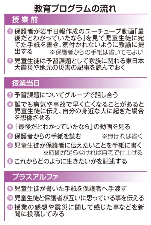 東日本大震災15年*「最後だとわかっていたなら」*岩手日報の広告 教材に*別れは突然 悔いなく生きて